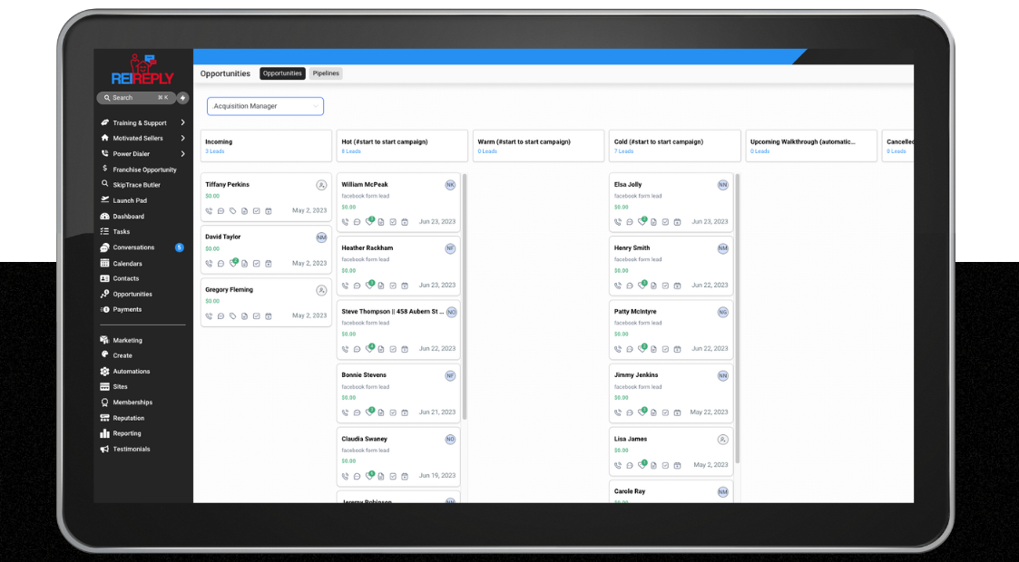Once, a lead is pushed to the manager pipeline. The manager will call the lead to determine if its a HOT, WARM, COLD lead. You have access to automatic campaigns that will follow up with the seller.