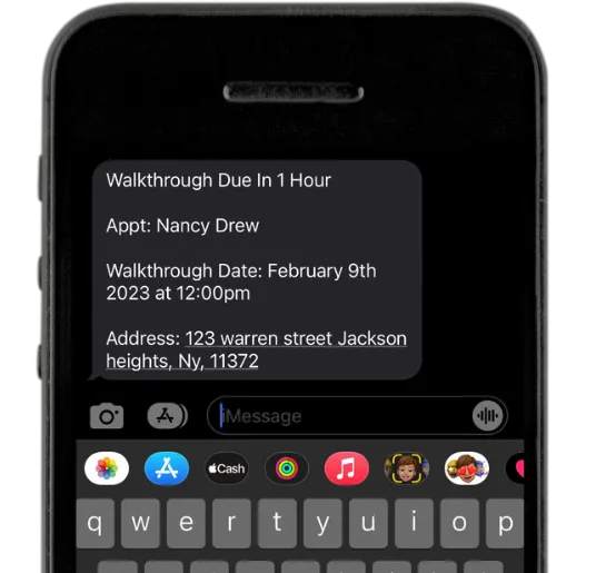 SMS Reminders For Walkthroughs for both the seller and you.