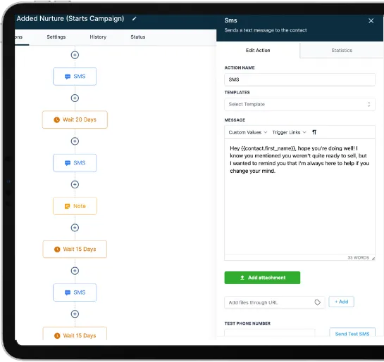 You can add your HOT, WARM, COLD leads into campaigns that will send out sms every 5, 7, 15 days automatically